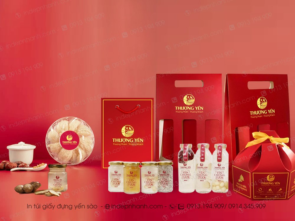 * Túi giấy đựng yến sào dựa vào yêu cầu thực tế sẽ tư vấn Bạn dùng túi có sẵn, túi giấy có sẵn in decal dán lên hay in túi riêng cho thương hiệu của Bạn