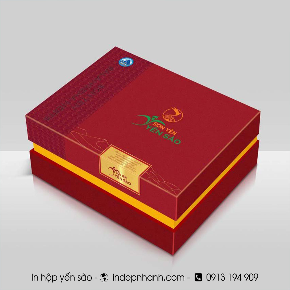 * Hộp yến sào cao cấp được làm với chất liệu cứng như in hộp bồi giấy cứng, hộp carton cứng hoặc giấy rất dày để định hình sản phẩm bên trong và an toàn khi vận chuyển.