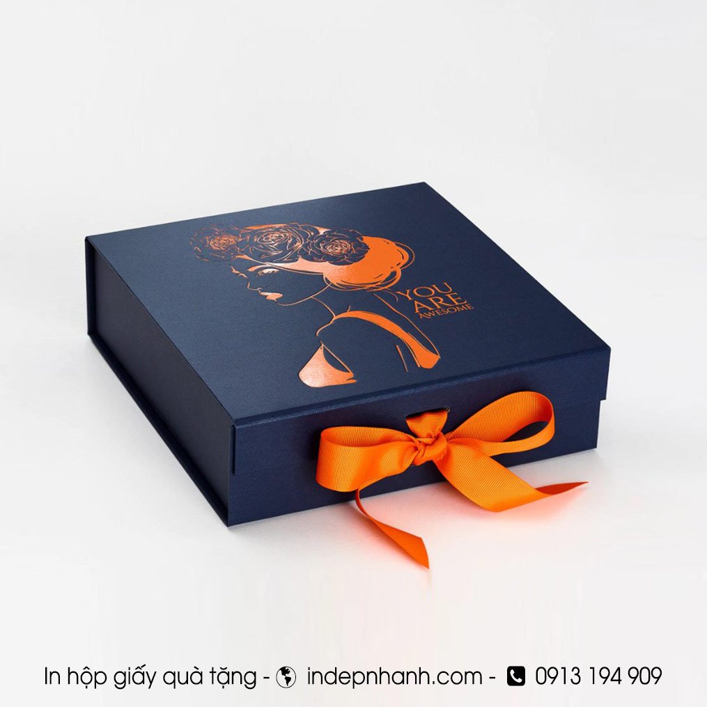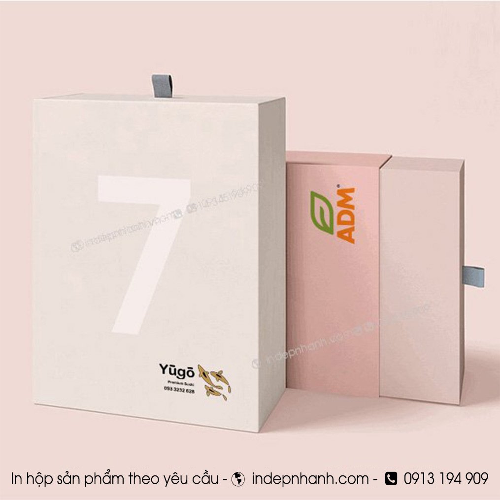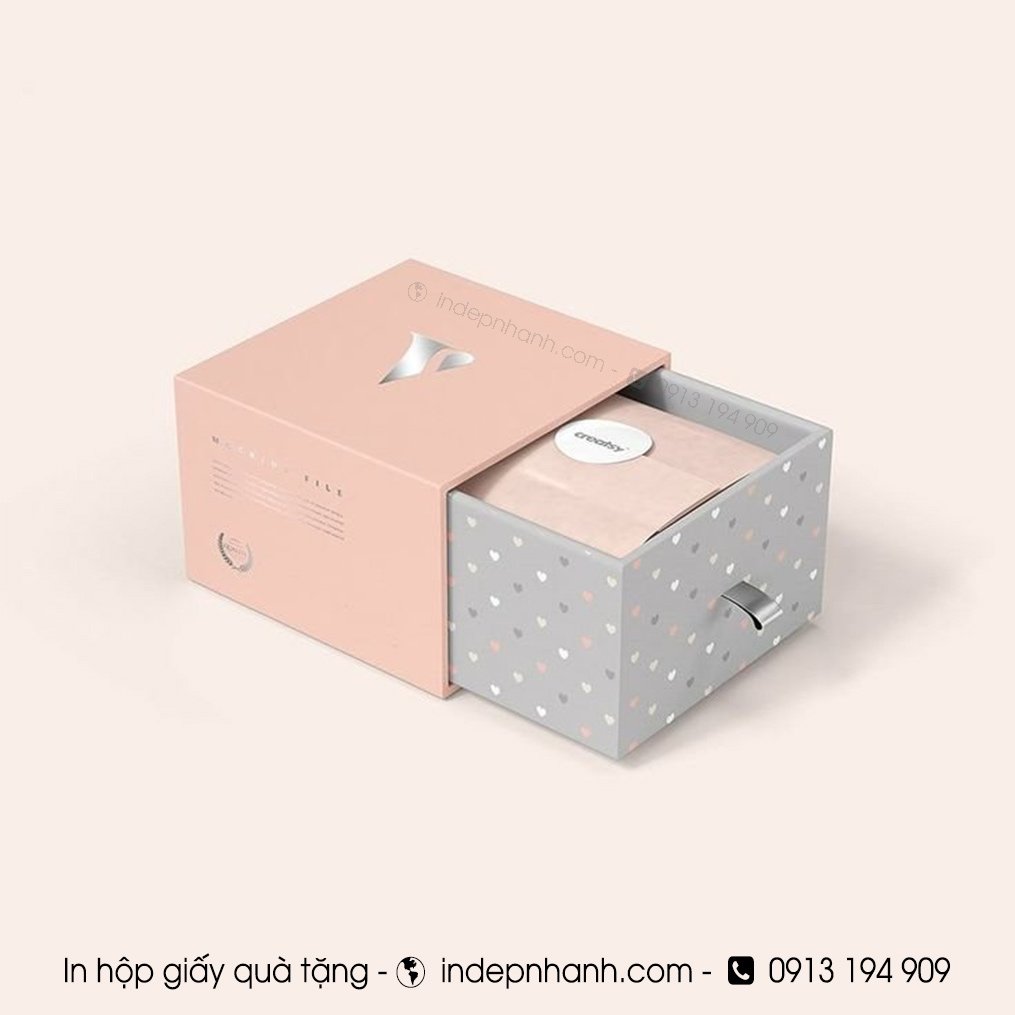 * In hộp giấy quà tặng cao cấp dạng kéo trên chất liệu metalize