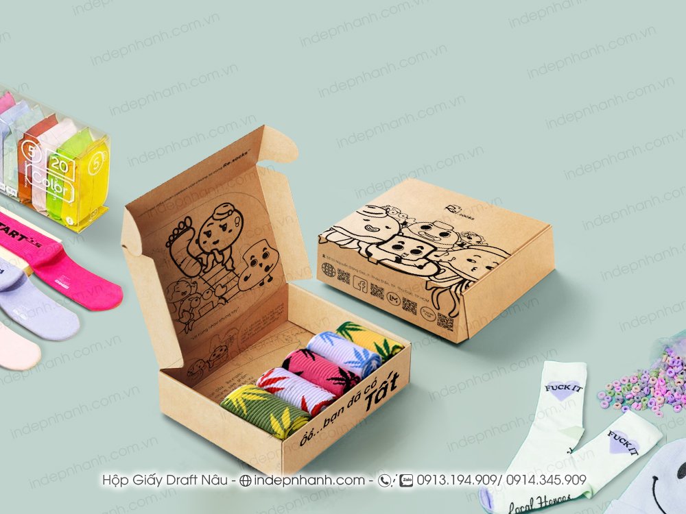* In hộp giấy quà tặng trên chất liệu giấy kraft nâu