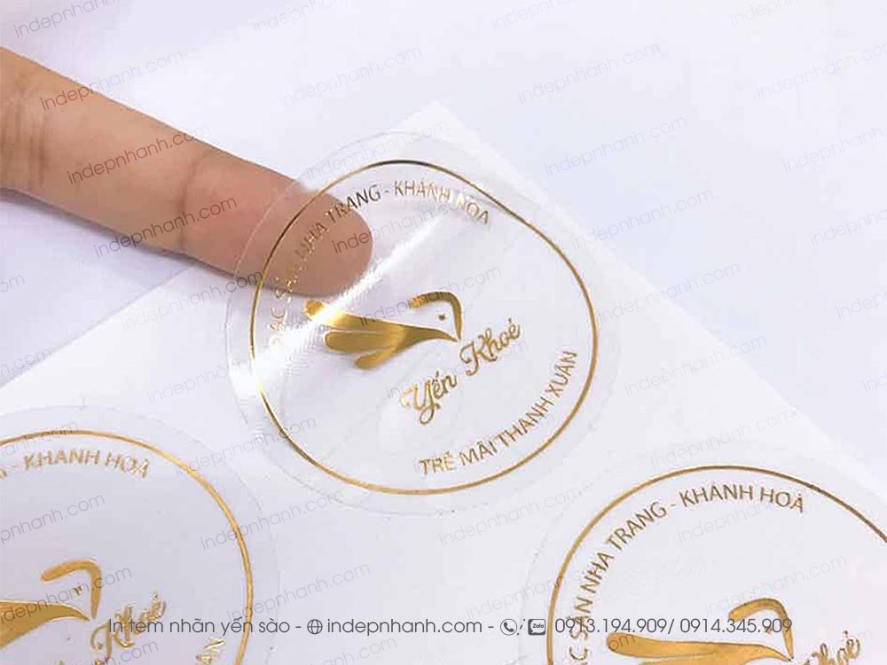 3. Decal nhựa trong suốt: Vừa có khả năng rách & thấm nước thì khách hàng của mình hay chọn decal trong suốt vì có thể thấy xuyên qua sản phẩm yến sào cao cấp ở trong.