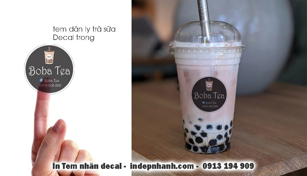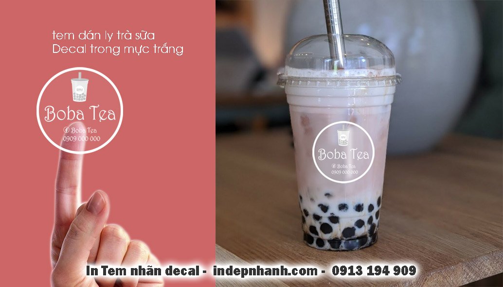 In tem nhãn dán ly trà sữa bằng decal trong có thể thấy sản phẩm phía trong