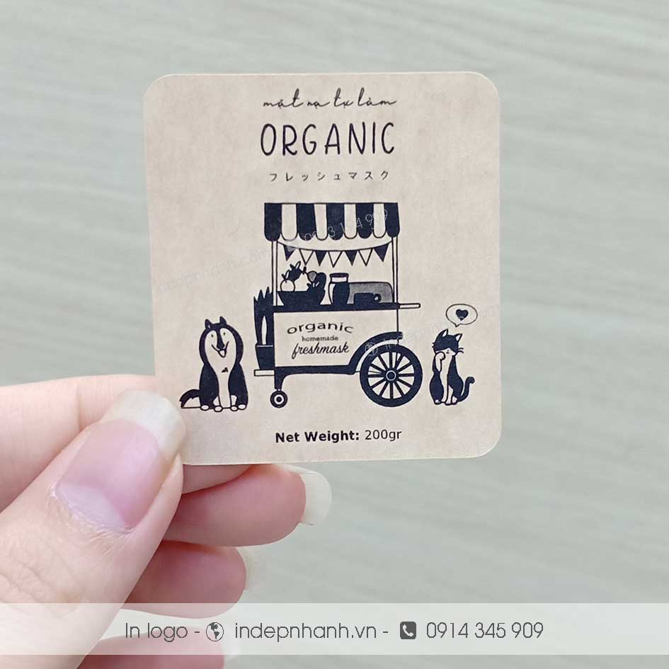 Sử dụng: dán lên chai mật ong, chai nước mắm, hộp sản phẩm, túi giấy, tập, sổ tay ghi chú, bao bì quán ăn vặt, in mã vạch, tem phụ, nhãn phụ dán sản phẩm,..
