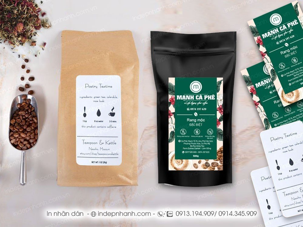 * Chất liệu decal được chọn cho sản phẩm dạng này là decal giấy láng couche, có thể phủ màng cho đẹp hay không cần phủ vẫn không ảnh hưởng chất lượng tem nhãn