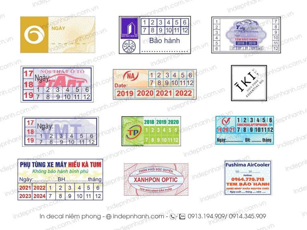 * Decal bể / decal vỡ: dùng để in tem bảo hành, tem niêm phong