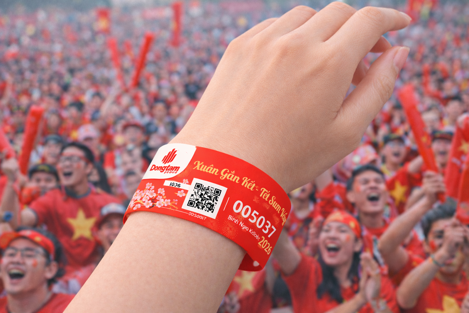 In vòng tay giấy là dịch vụ in nội dung (logo, tên sự kiện, mã QR, số seri…) lên chất liệu giấy tổng hợp chống nước (Tyvek). Vòng tay có lớp keo dán 1 lần, không thể tháo ra tái sử dụng, giúp kiểm soát khách tham dự hiệu quả.