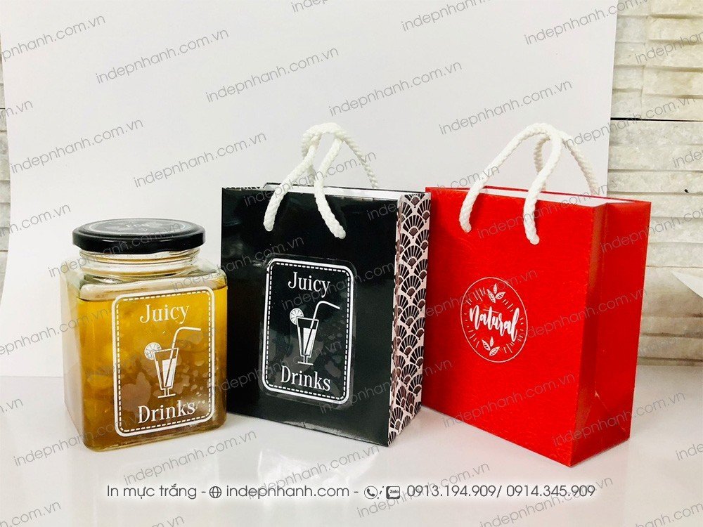 - Tên sản phẩm in ấn: in tem nhãn, decal nhựa trong chữ trắng