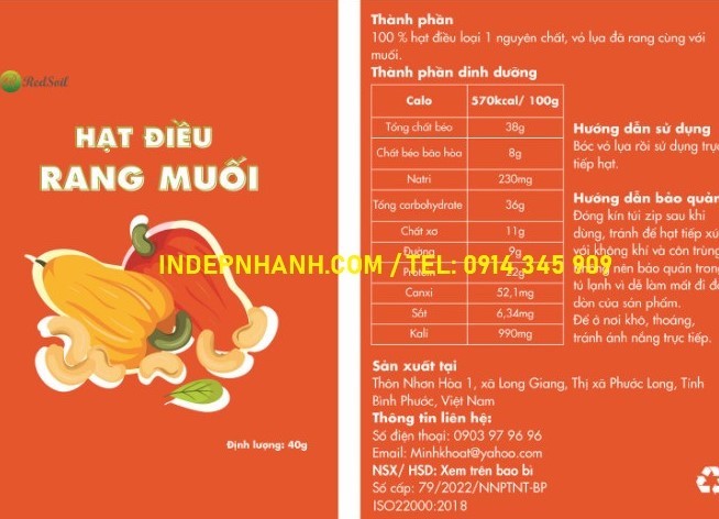 In tem nhãn dán bao bì hạt điều