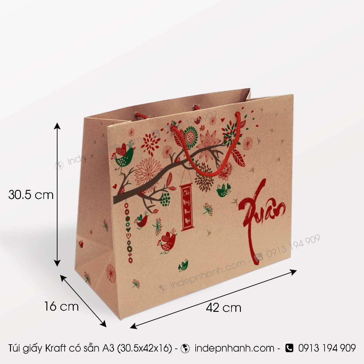 Túi giấy kraft nâu A3 TẾT có sẵn, bán lẻ từ 10 túi