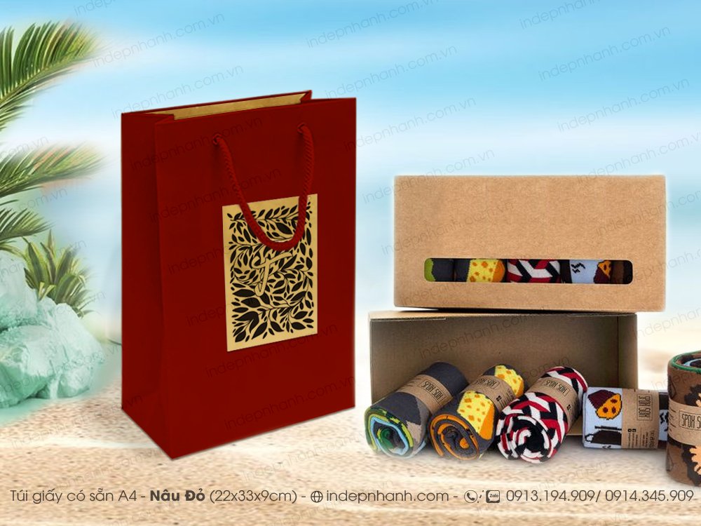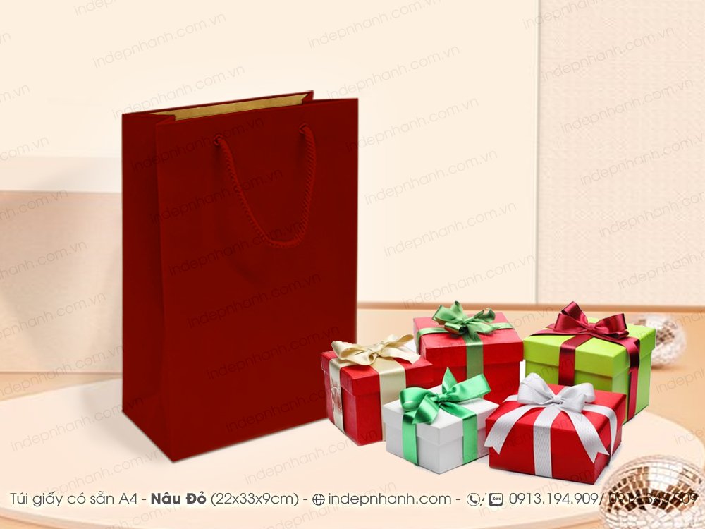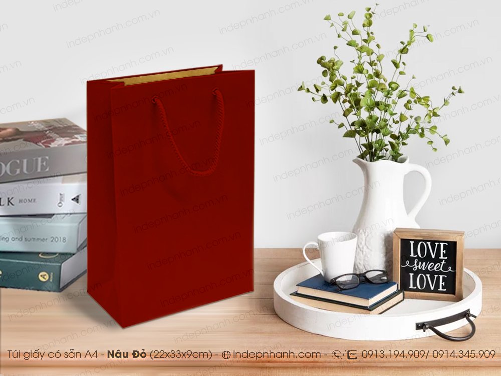 Túi giấy kraft nâu đỏ A4 có sẵn với chức năng đa dạng