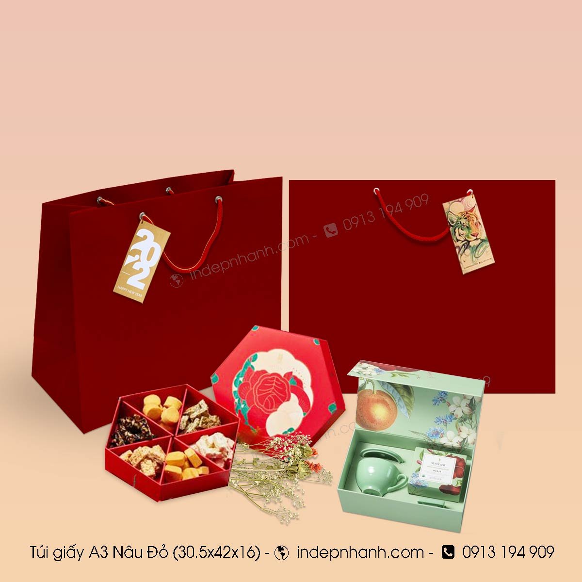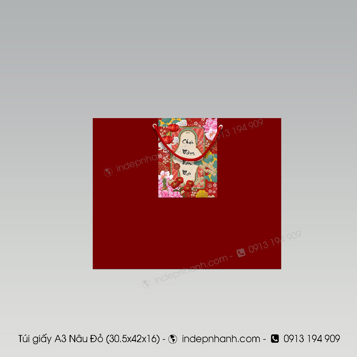 Nếu cần túi giấy lớn đại A3 màu đỏ cực đẹp, Bạn bấm vào hình bên dưới để tham khảo. Có 2 loại túi có chữ & loại không chữ