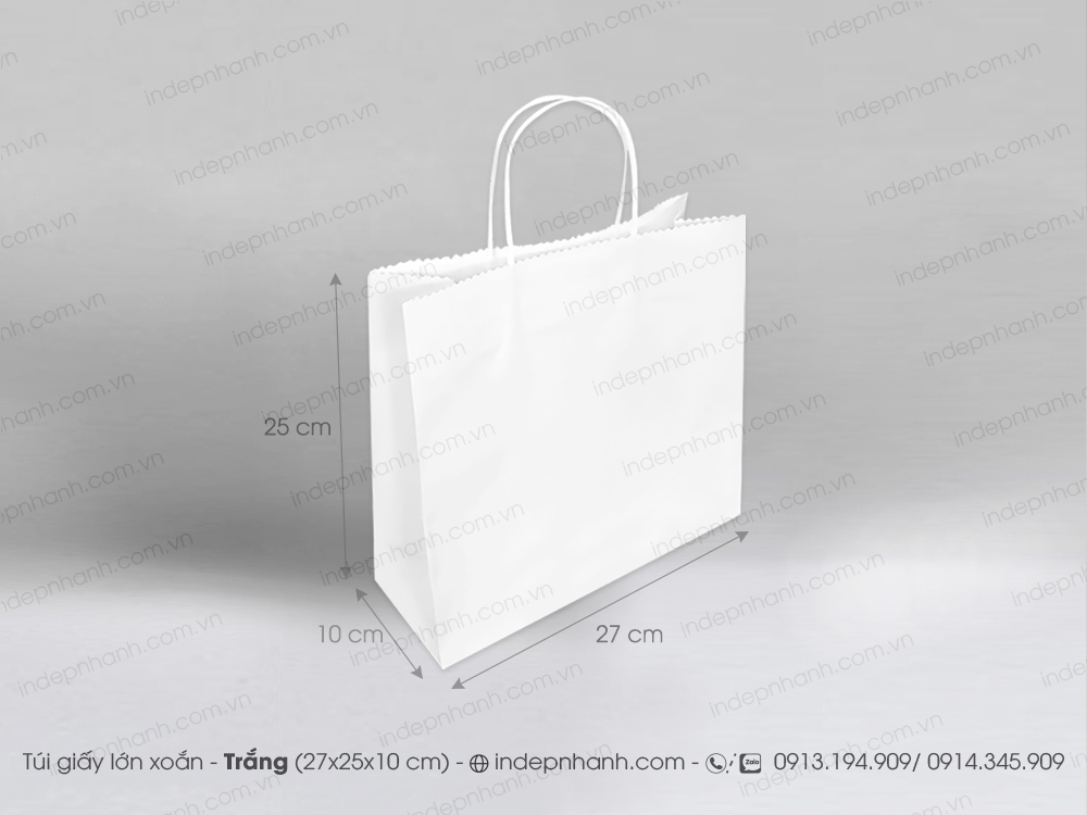 * Túi giấy kraft trắng lớn có sẵn chưa in với quai túi màu trắng.