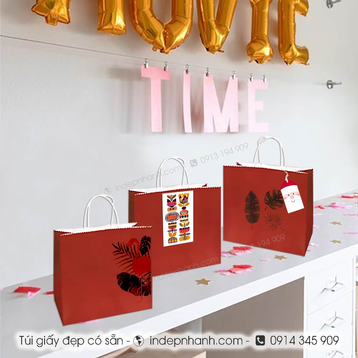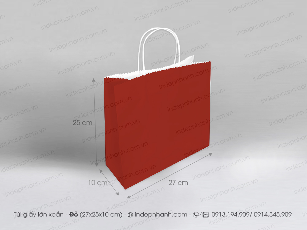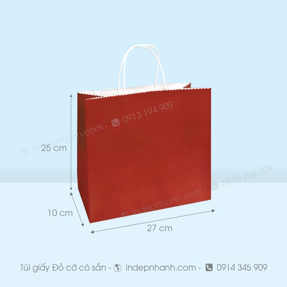 * Túi giấy đẹp có sẵn màu đỏ quai xoắn giấy có thể in màu đen và màu theo yêu cầu từ 50 túi