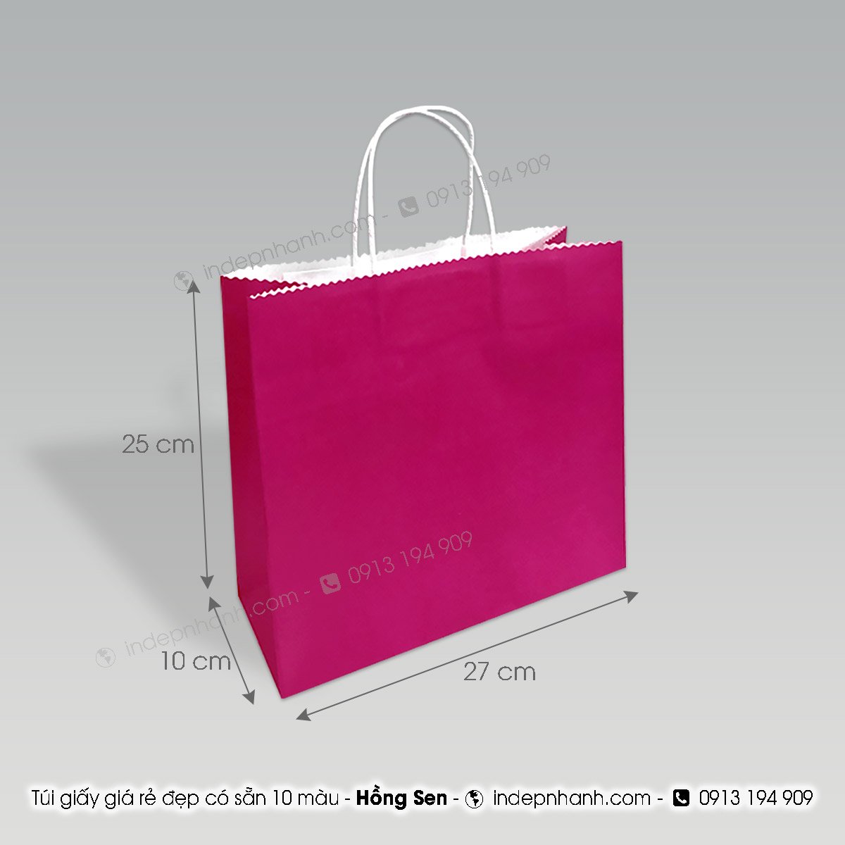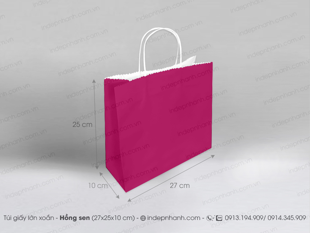 * Túi giấy kraft lớn màu hồng đậm có sẵn chưa in với quai túi màu trắng.