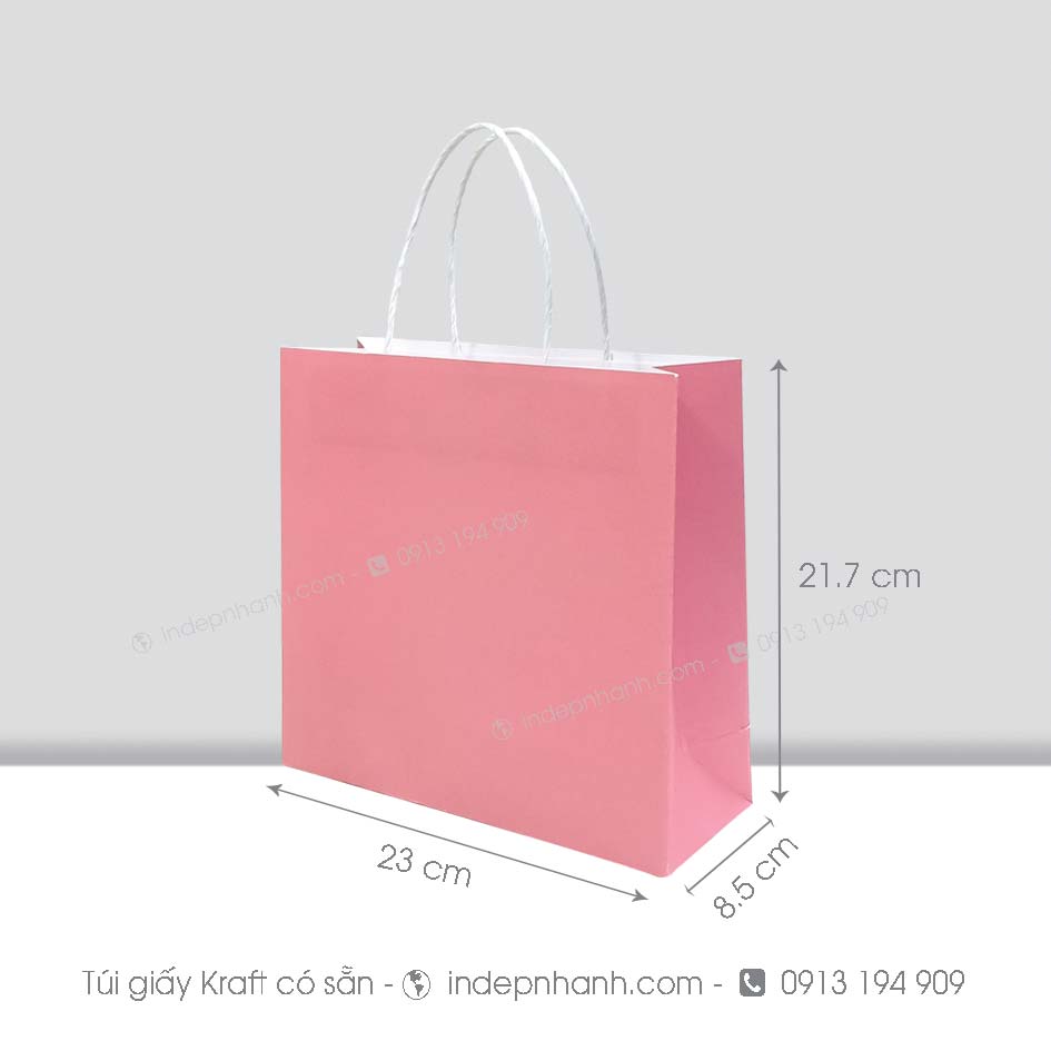 * Túi giấy mỹ thuật đẹp màu hồng chưa in với quai túi màu trắng