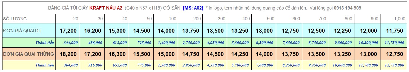 * Quy cách túi giấy kraft nâu A2. Bán lẻ từ 20 túi trở lên