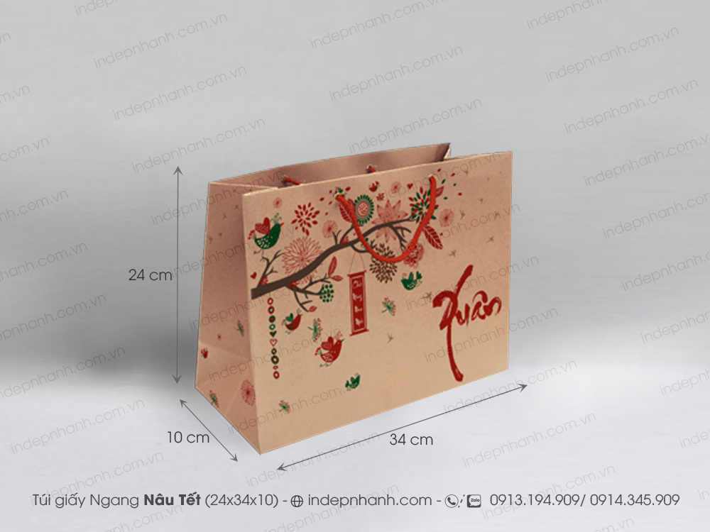 Túi giấy kraft ngang nâu TẾT có sẵn Cho doanh nghiệp