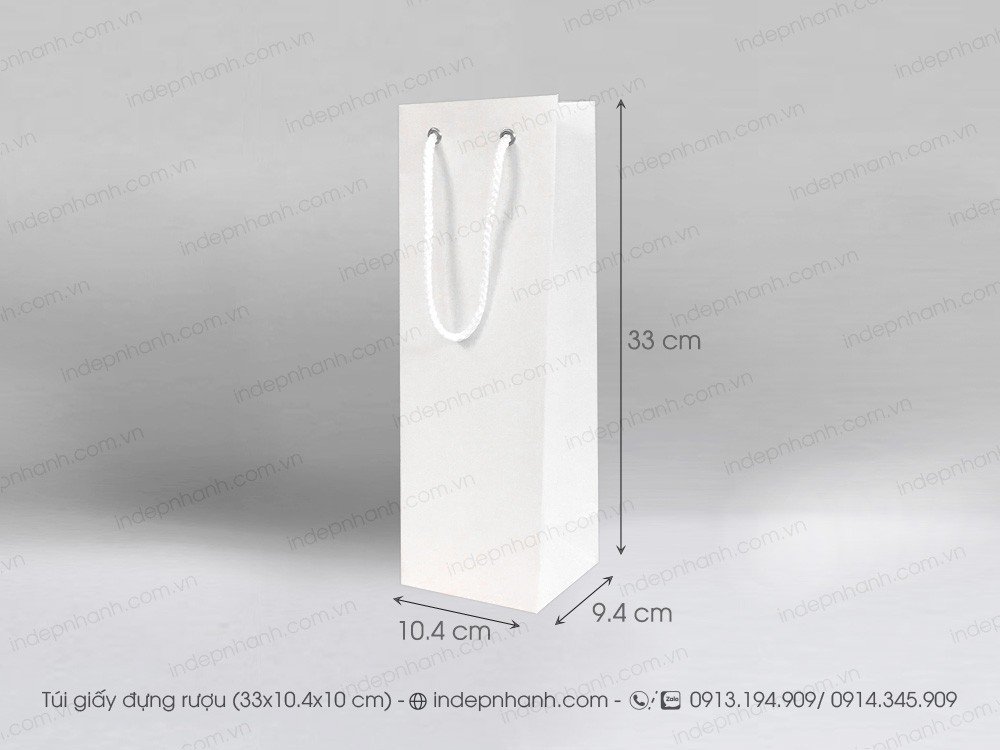 Quy cách túi giấy đựng rượu màu trắng có sẵn, bán từ số lượng 10 túi