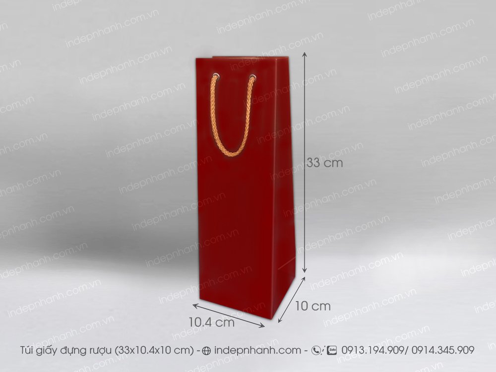 * Quy cách & hình ảnh thực của túi giấy đựng rượu kraft đỏ có sẵn, bán từ số lượng 10 túi