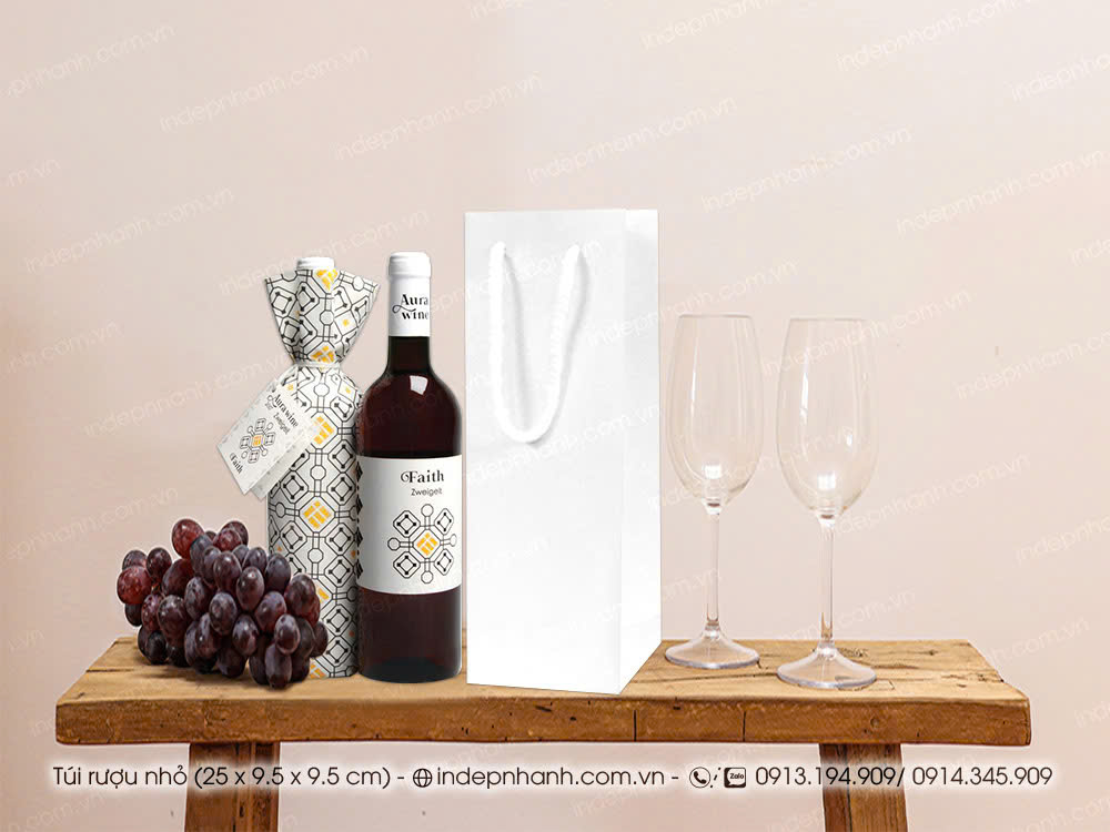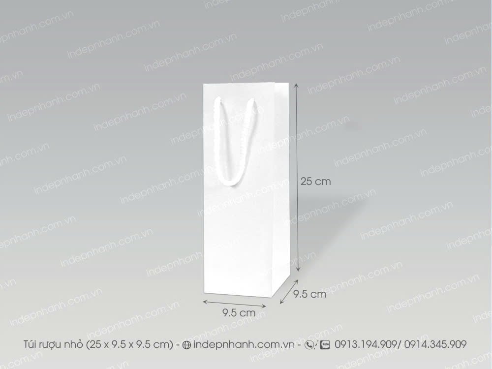 Quy cách túi giấy đựng rượu màu trắng nhỏ có sẵn, bán từ số lượng 20 túi