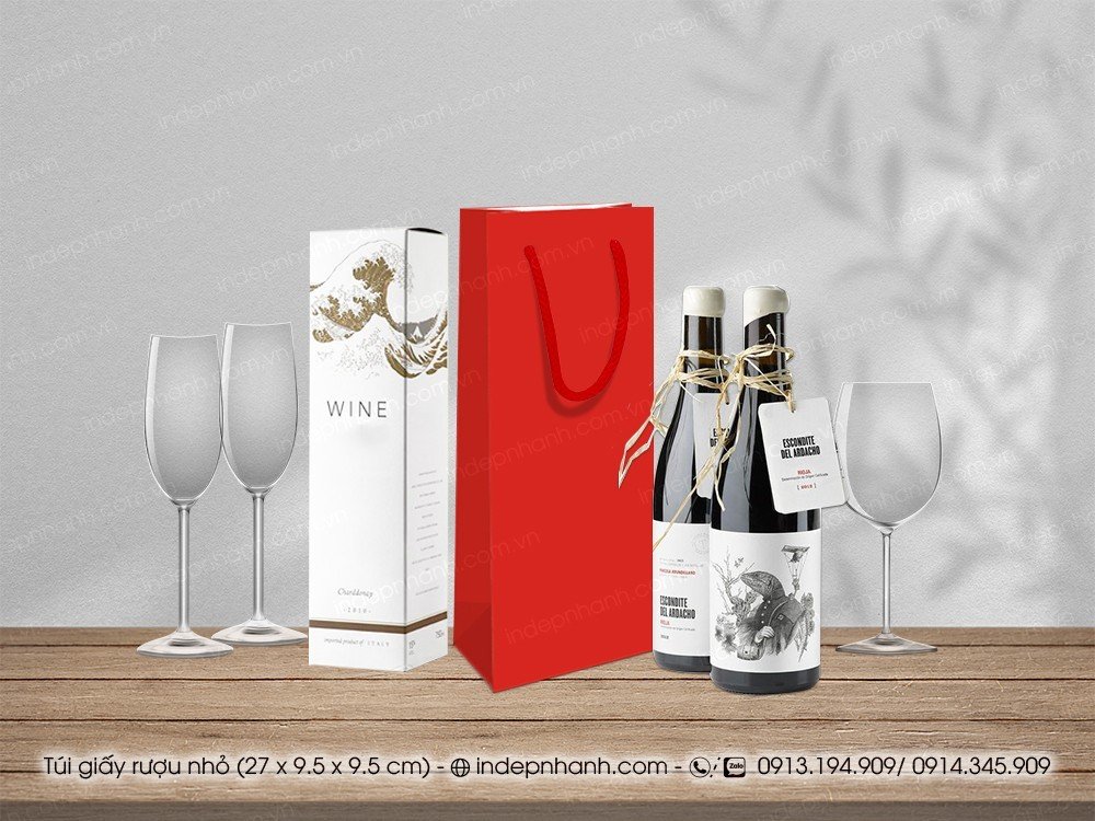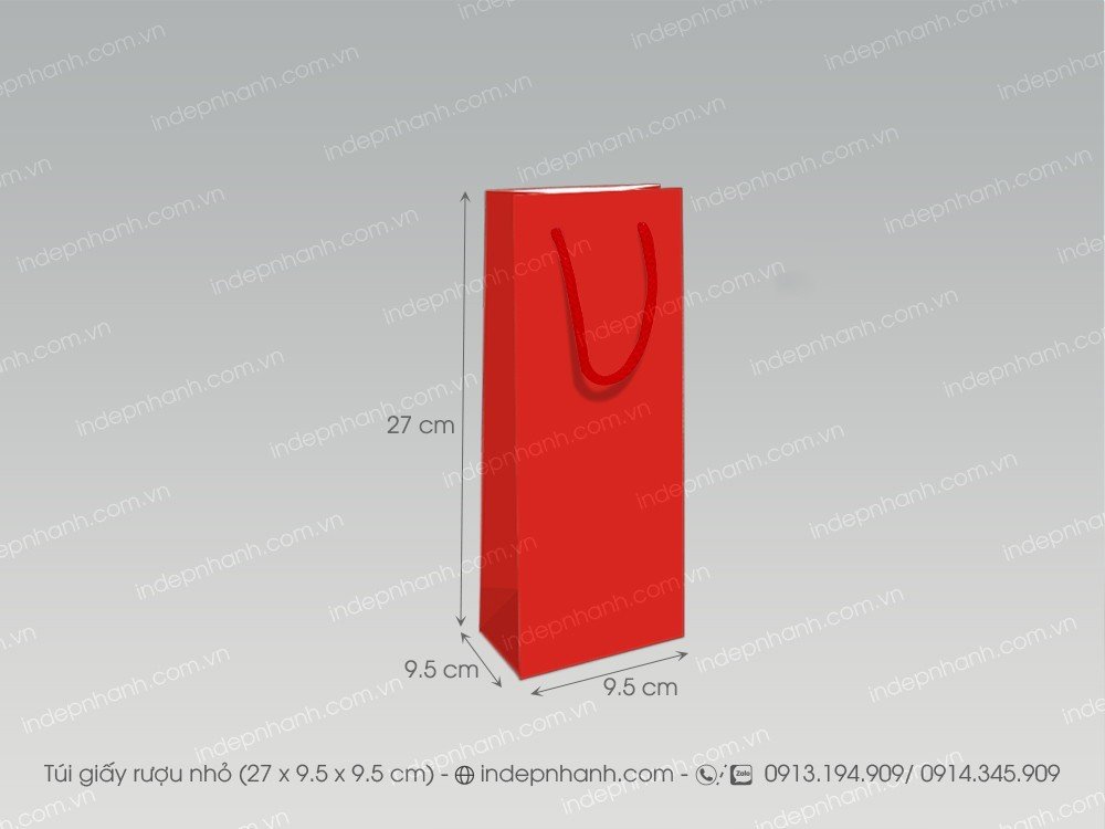 Quy cách túi giấy đựng rượu màu đỏ nhỏ có sẵn, bán từ số lượng 20 túi