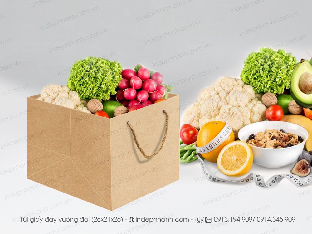 Túi giấy đựng hộp cơm, túi giấy đựng hoa quả trái cây linh hoạt khi sử dụng