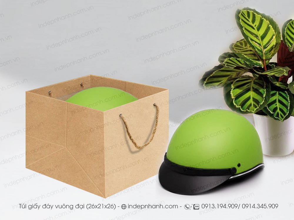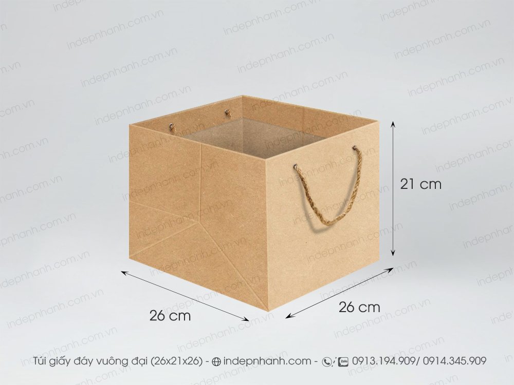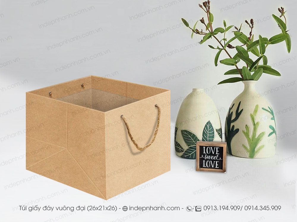 Túi giấy đáy vuông 26 cm, dùng đựng tô chén dĩa, nồi cơm điên nhỏ, mũ nón bảo hiểm, túi giấy đựng hoa quả trái cây bán từ số lượng 10 túi