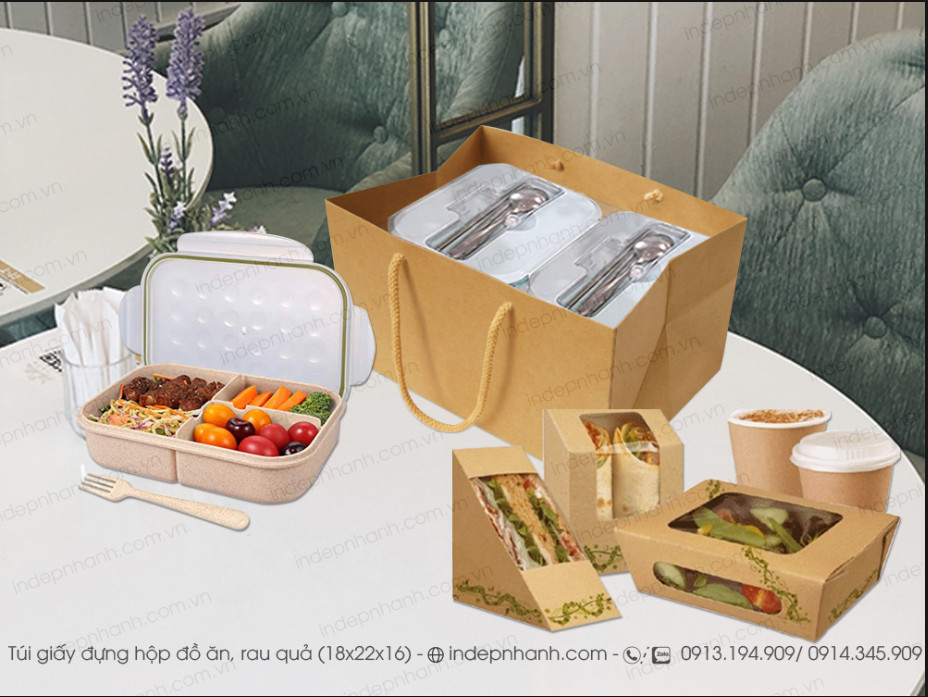 Túi giấy đựng hộp cơm, túi giấy đựng hoa quả trái cây linh hoạt khi sử dụng