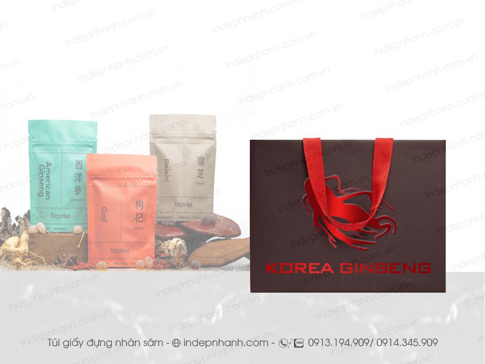 Nhân sâm được coi là món quà tặng cao cấp nên việc chọn lựa nhà cung cấp in túi giấy đựng nhân sâm, hộp nhân sâm & các phụ kiện ngành như nhãn dán , tem dán niêm phong & cả tờ hướng dẫn cần đảm bảo chất lượng, uy tín là điều đáng quan tâm nhất. Túi giấy đựng nhân sâm được làm công phu để giữ sản phẩm cao cấp nhất.