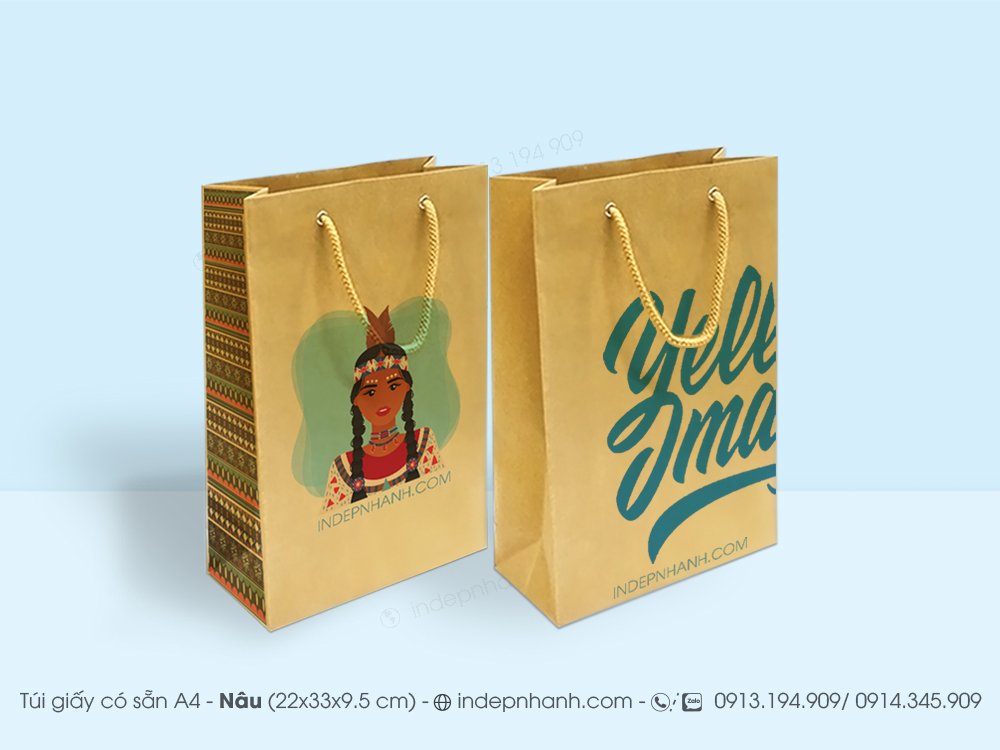 Hoặc nhận in túi giấy theo yêu cầu số lượng ít với các loại giấy & mẫu dây đa dạng. Vừa đẹp lại rẻ. Chúng tôi có nhiều loại giấy kraft nâu, túi giấy kraft trắng,...