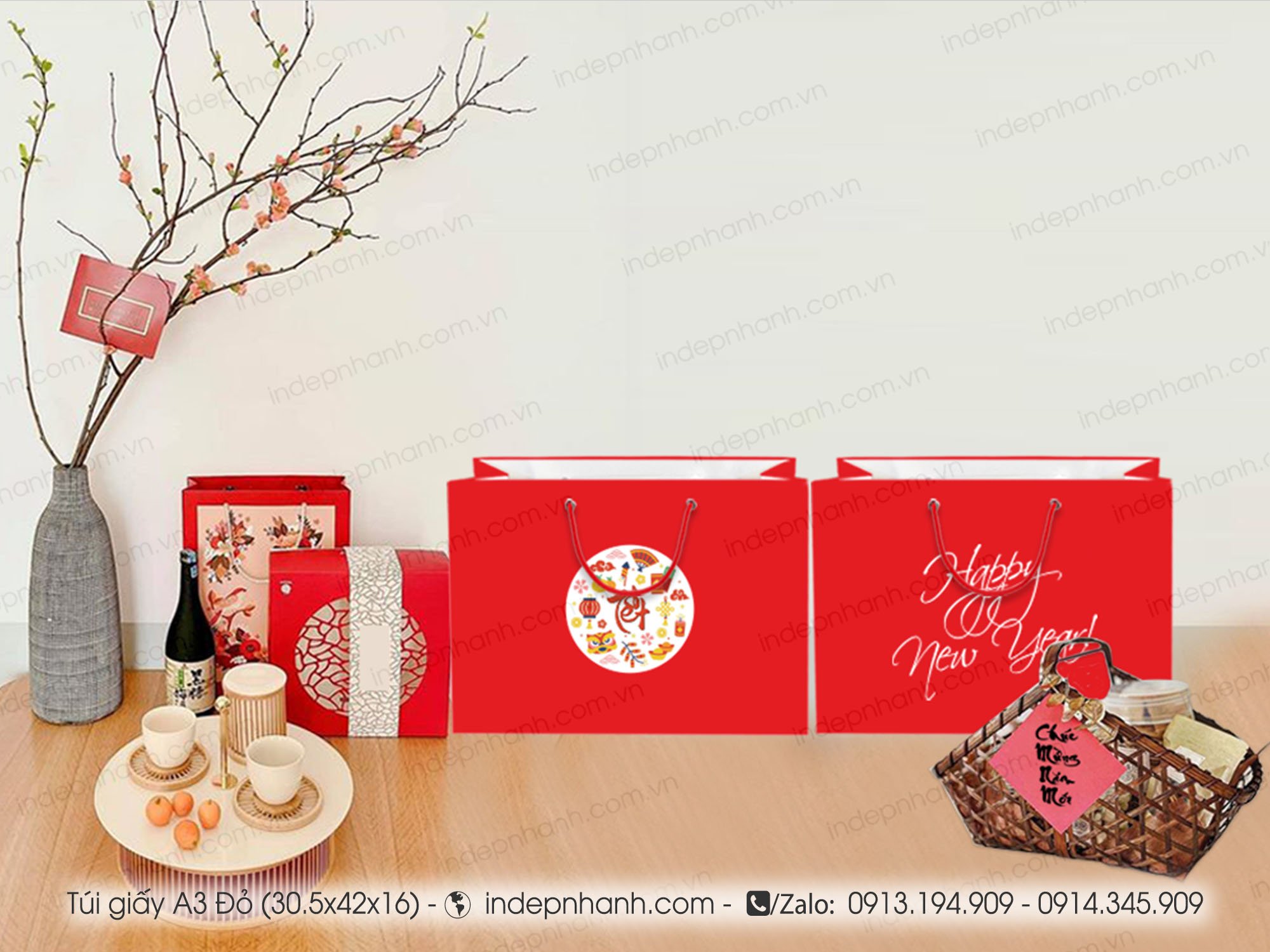 Indepnhanh.com.vn chuyên in các loại túi giấy TẾT, túi giấy năm mới cho quý doanh nghiệp và công ty